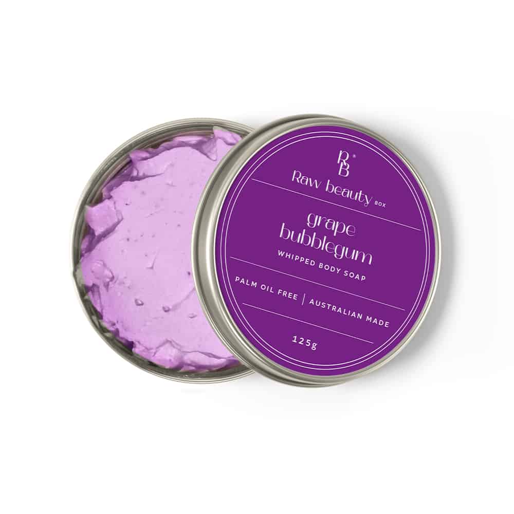 Grape Bubblegum Whipped Face Soap brings a playful twist to your skincare routine with a fun, nostalgic scent. Australian-made and small-batch, this 125g cleanser lifts daily buildup with a light, creamy lather. Juicy grape blends with classic bubblegum for a cheerful wash that still treats your skin with care.