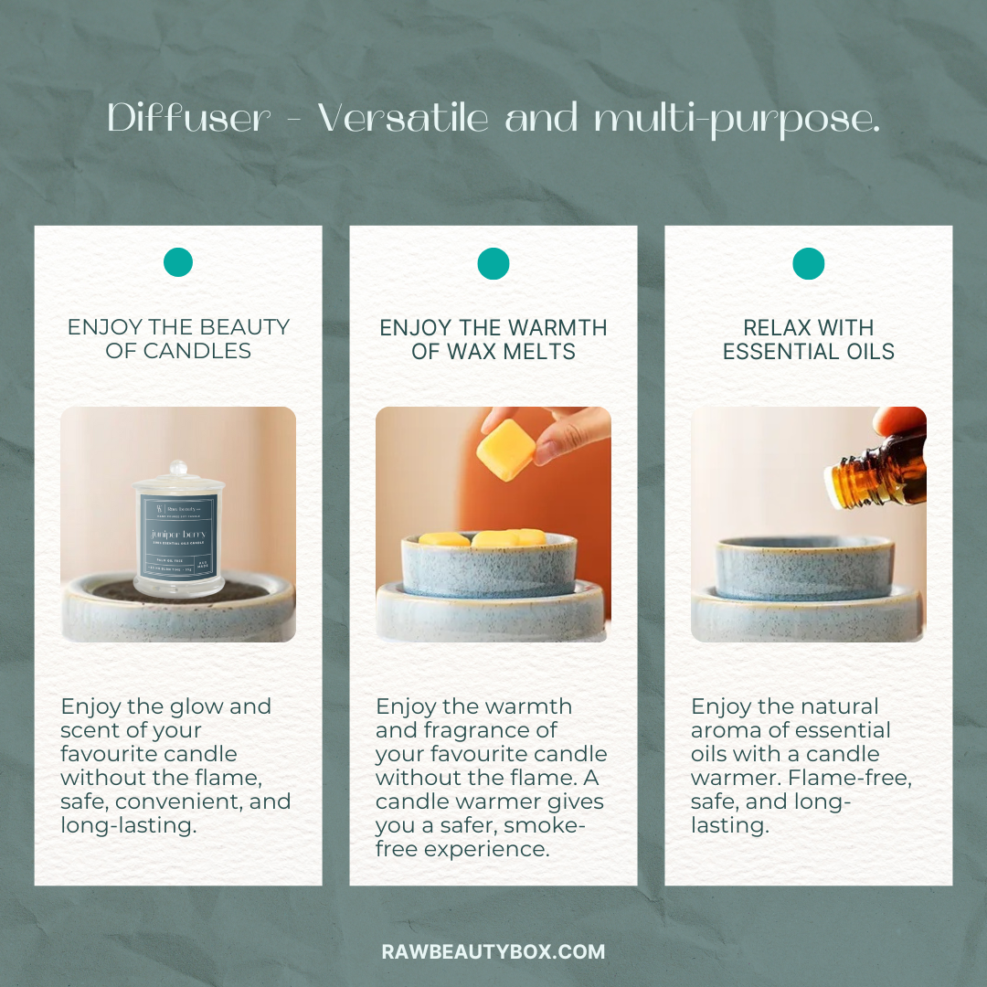 To enjoy, simply place one into your Raw Beauty Box Electric Wax Melt Diffuser in Brown, Crème, or Blue. The gentle flameless heat melts the wax slowly and evenly, filling your home with a consistent fragrance that lasts for hours without smoke, soot, or flame. Safe, stylish, and effective, Lemongrass & Persian Lime Wax Melts are
